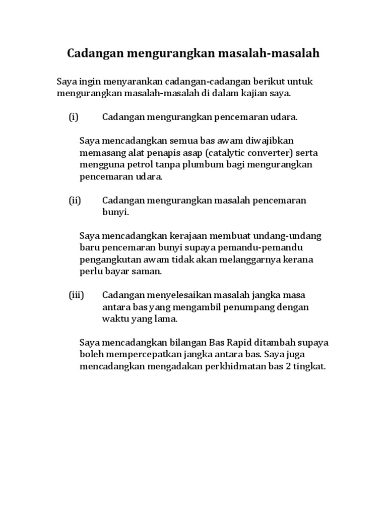 Cadangan Mengurangkan Masalah Pdf